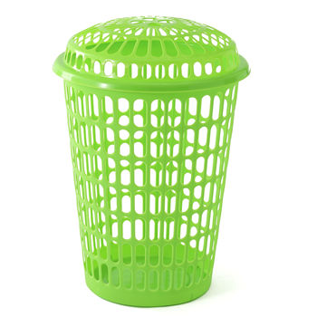 PP OEM سلة زرقاء وردية خضراء بغطاء ، غسيل بلاستيكي لتخزين الملابس المتسخة